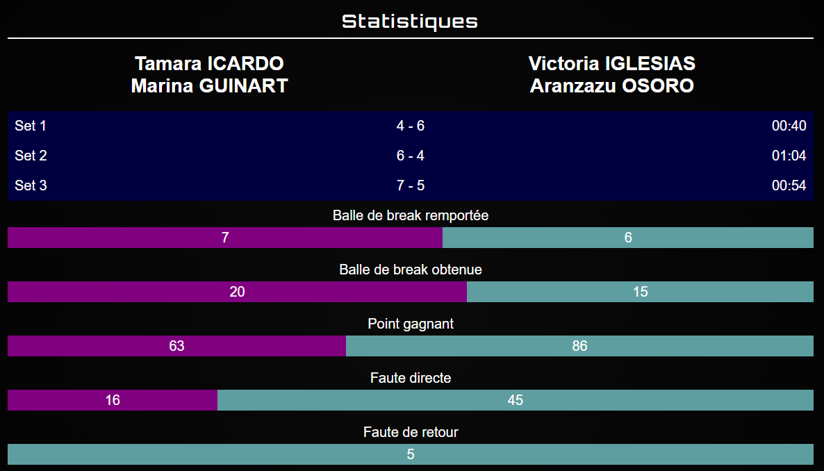 El partido fue muy intenso: 86 puntos ganadores por Iglesias y Osoro, en contra 63 para sus oponentes, pero también 45 errores no forzadosUna cifra que les salió cara. Más agresivos, pero menos consistentes, los españoles dejaron escapar oportunidades valiosas.